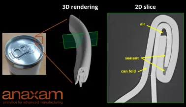 Mit der ANAXAM Synchortron CT-Analyse konnten wir eine 360°-Ansicht der Dichtstoffverteilung innerhalb des Falz erstellen.”