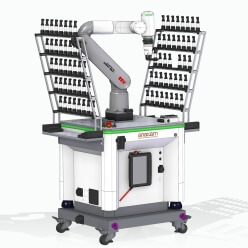 Vollautomatisierte Probenwechseleinheit mittels Roboterinfrastruktur